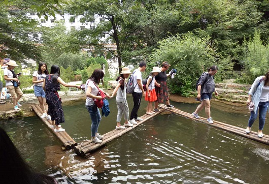 到達(dá)景區(qū)后,在導(dǎo)游的帶領(lǐng)下我們乘坐“小交通”一路上行,首先來到了綿山景點(diǎn)的第二站——云峰寺,之后去了水濤溝和一線天。在一線天陡峭的懸崖上有十余架天梯蜿蜒而上,而在我們的腳下是淙淙溪流。在這一路上,盛大美璃團(tuán)隊(duì)表現(xiàn)出了他們團(tuán)結(jié)互助的一面,主管白楊一路殿后生怕落下一個(gè)人,有些姑娘們不敢往前,大家就給以鼓勵(lì),予以幫助,在這尖叫連連聲中到達(dá)了一線天的頂峰。這是整個(gè)游覽中最驚險(xiǎn),最刺激的一個(gè)環(huán)節(jié),也是最考驗(yàn)人的一個(gè)環(huán)節(jié),雖然艱險(xiǎn),但是盛大鋼構(gòu)的每位成員都表現(xiàn)出了不怕困難、勇往直前的不服輸?shù)木瘛?/p>